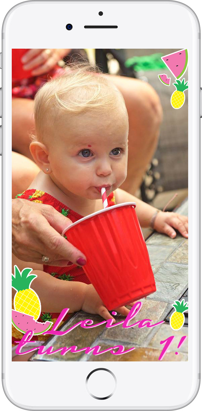 Leila turns 1! Why not celebrate a birthday or life event with a custom filter? This little girl was the queen of her day when her guests could snapchat moments with her very own filter! The family was so happy with the way this turned out!