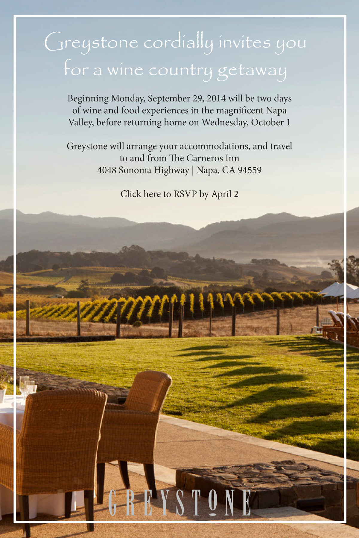 Invitation made for a Napa Getaway.